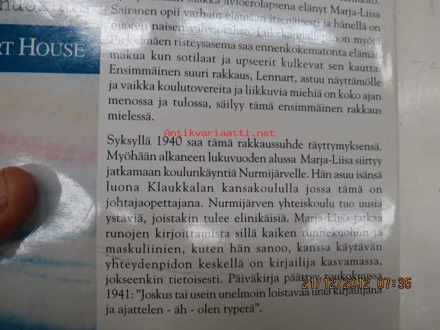 Vartio Marja-Liisa, Art House Oy, 199415 x 22 cm.