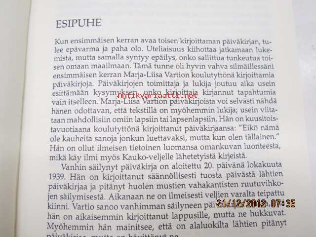 | Saatavilla | 1 kpl | | Julkaisuvuosi | 1994 | | Sivuja | 335 | | Painos | 1. | | Kunto | K3 | | Sidonta/painoasu | Sidottu (kansipaperit) | | ISBN | 951-884-147-0 | | Kielet | Suomi |
