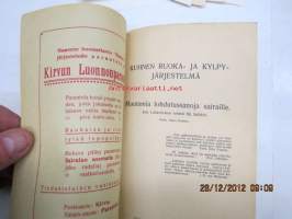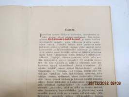 | Saatavilla | 1 kpl | | Julkaisuvuosi | 1922 | | Sivuja | 131 | | Painos | 1. | | Kunto | K3 | | Sidonta/painoasu | Nidottu (pehmeäk.) | | Kielet | Suomi |
