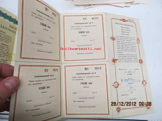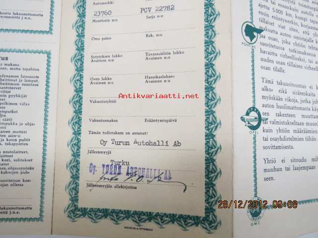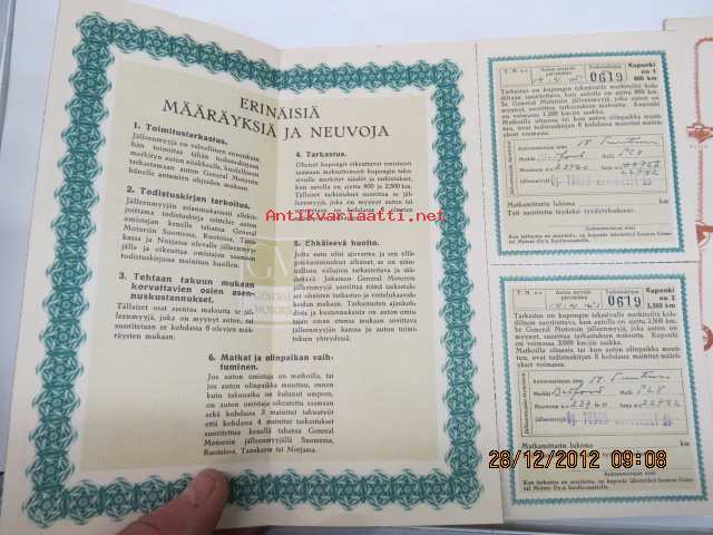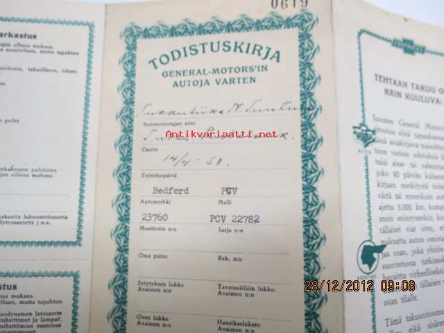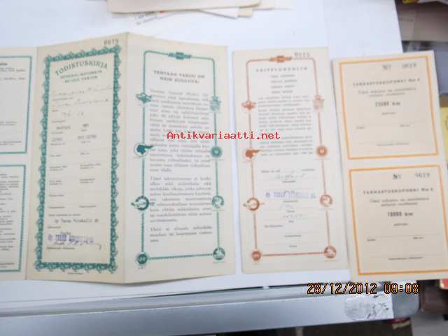 Bedford PCV / GM tarkastus- ja voitelukupongit, takuumääräyksiä