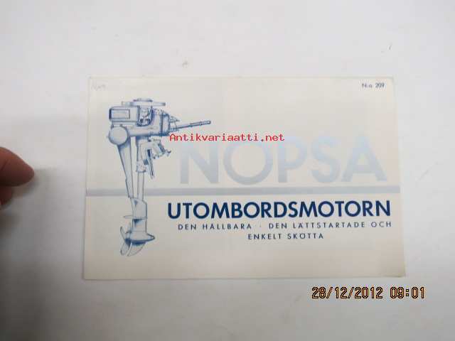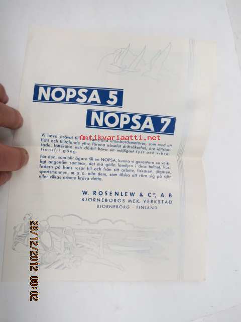 Nopsa 5, 7 perämoottori (Rosenlew, Porin Konepaja) -myyntiesite ruotsiksi