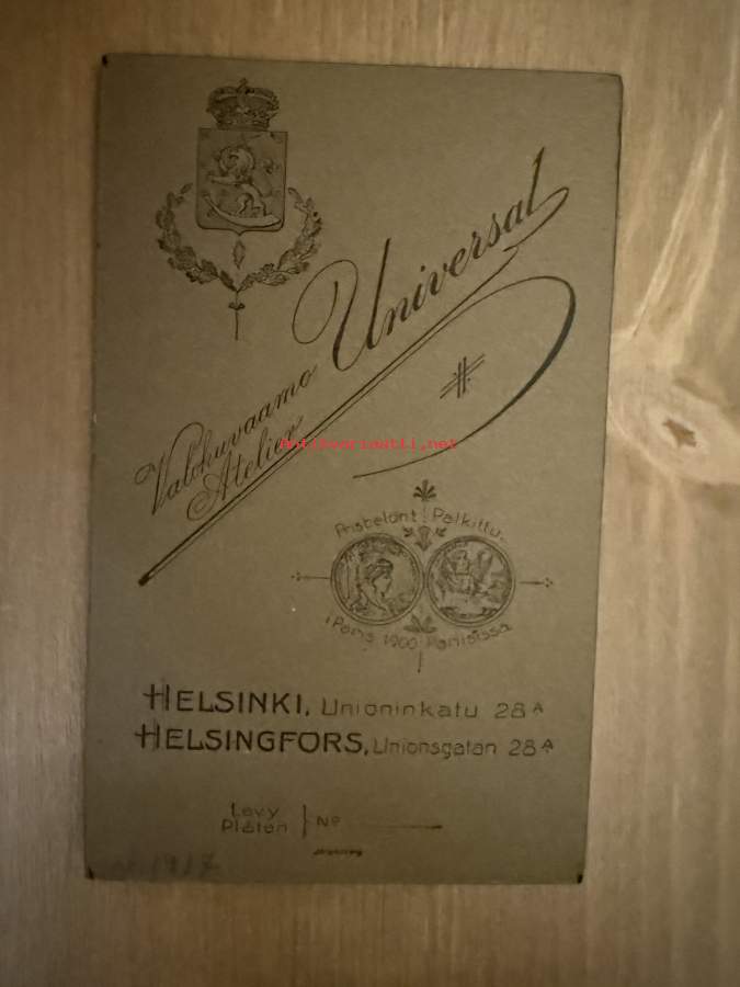 Valokuvaamo Atelier Universal, Helsinki -visiittikorttivalokuva / visitcard photo - cdv