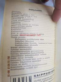 | Saatavilla | 1 kpl | | Julkaisuvuosi | 1924 | | Sivuja | 128 | | Painos | 1. | | Kunto | K2 | | Kannessa tahra | | Sidonta/painoasu | Sidottu (kovak.) | | Kielet | Suomi |