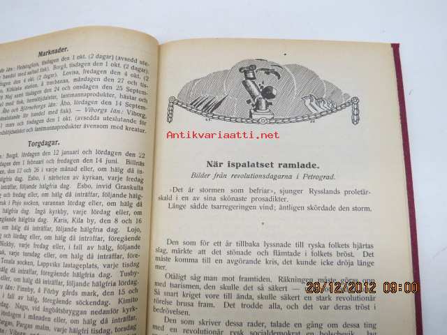 Folk kalender VIII 1918, innehåller mm. följande artikel; När ispalatset ramlade, Från Murmanska kusten, Pönttövuori tunnelbygge, Vad den ryska revolutionen betytt för tidningsprässen
