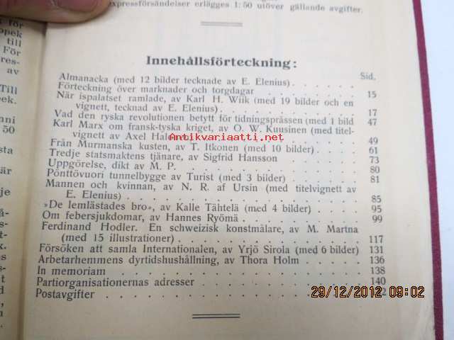 Folk kalender VIII 1918, innehåller mm. följande artikel; När ispalatset ramlade, Från Murmanska kusten, Pönttövuori tunnelbygge, Vad den ryska revolutionen