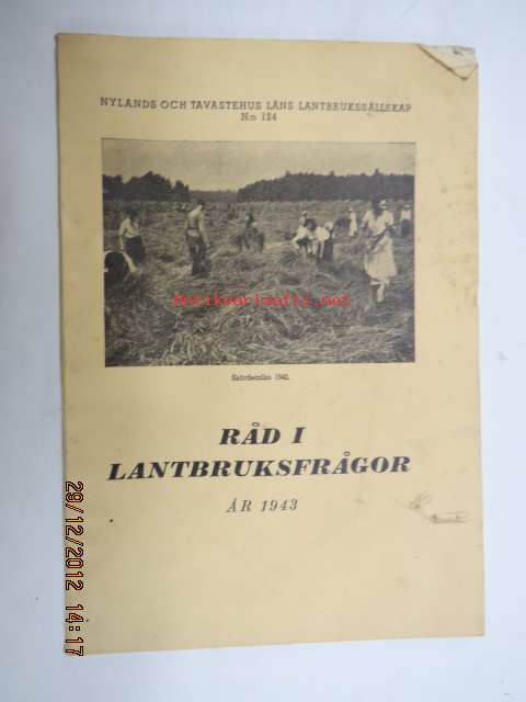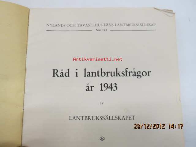 Nylands och Tavastehus LLäns Lantbrukssällskap, 194315 x 21 cm.