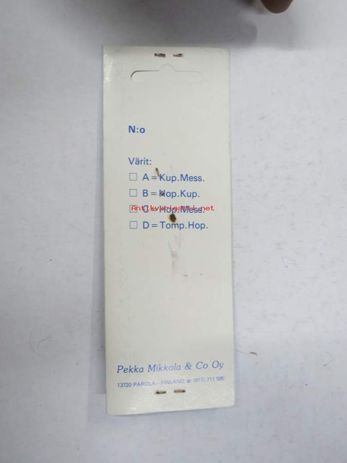 Alkuperäinen "Otto" - Pekka Mikkola & Co Oy, Parola -pilkki, kuparinvärinenkäyttämätön, alkuperäispakkauksessaan