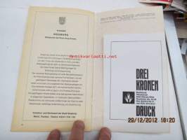 | Saatavilla | 1 kpl | | Julkaisuvuosi | 19 | | Sivuja | 56 | | Kunto | K3 | | Sidonta/painoasu | Pienpainate | | Kielet | Saksa |