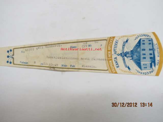 Rauman I:nen Apteekki - Kanta Apteekki, Rauma, 10.10.1947-apteekkisignatuuri