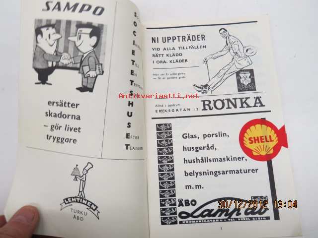 | Saatavilla | 1 kpl | | Julkaisuvuosi | 1966 | | Sivuja | 62 | | Kunto | K3 | | Sidonta/painoasu | Nidottu (pehmeäk.) | | Kielet | Ruotsi |
