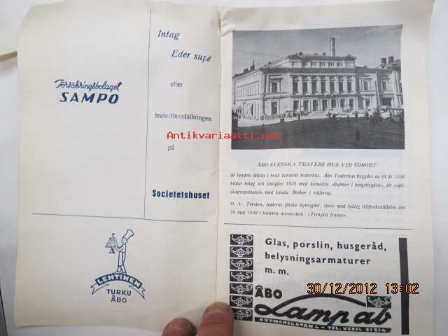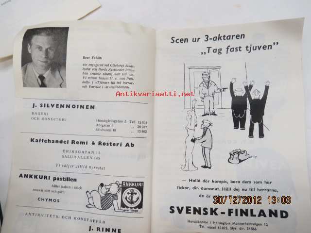 | Saatavilla | 1 kpl | | Julkaisuvuosi | 1959 | | Sivuja | 48 | | Kunto | K2 | | Sidonta/painoasu | Nidottu (pehmeäk.) | | Kielet | Ruotsi |
