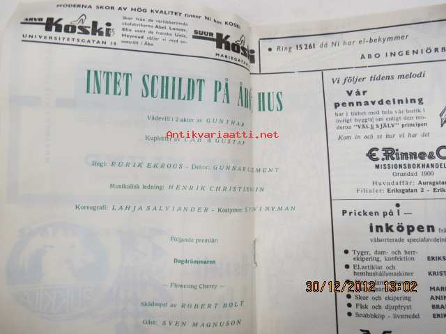 Åbo svenska teater spelåret 1959-60, Kiss me, Kate -käsiohjelma