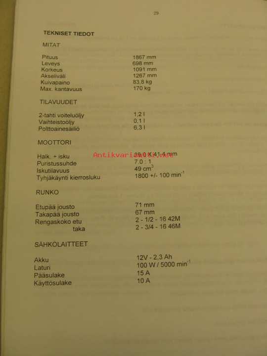 | Saatavilla | 1 kpl | | Julkaisuvuosi | 19 | | Sivuja | 30 | | Kunto | K4 | | Sidonta/painoasu | Nidottu (pehmeäk.) | | Kielet | Suomi |