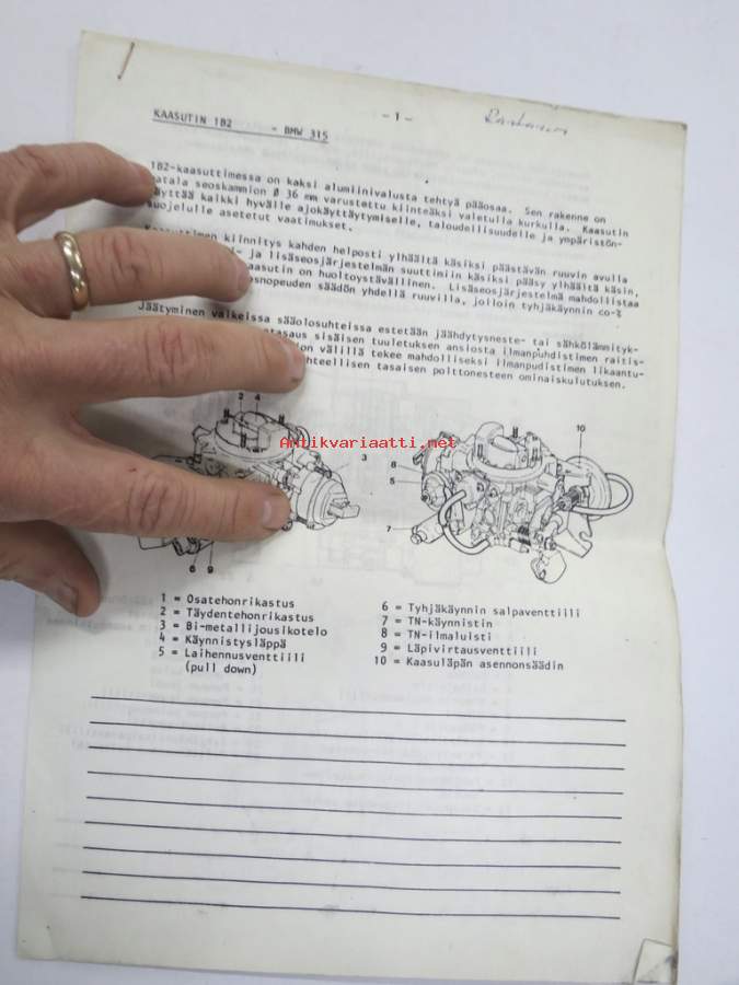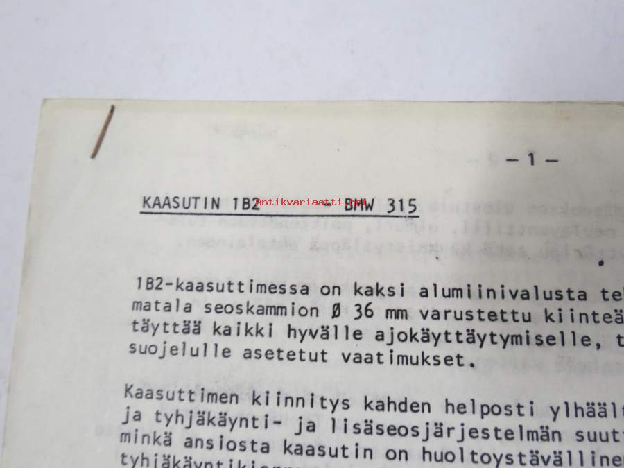 BMW 315 kaasutin 1 B2 -huolto-ohje ja tekniset tiedot monisteena