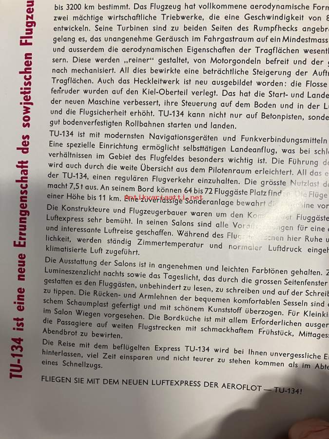 Aeroflot Tupolev-134 lentokone -esite saksaksi