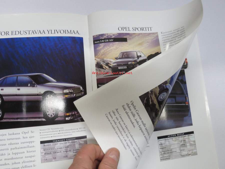 Opel Corsa, Astra, Vectra, Omega, Calibra, Senator + Sportit & Caravan mallisto 1992 -myyntiesite / brochure