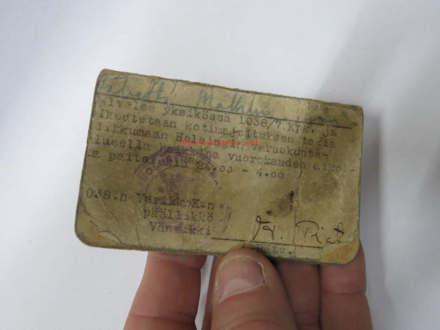 Lomatodistus 1038/7 kpk Iltalomatodistus nr 76 lähetti Kai Mäkinen, oikeutetaan liikkumaan H:gin varuskunta-alueella kaikkina vuorokauden aikoina, kotimajoitus