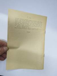 | Saatavilla | 1 kpl | | Sivuja | 12 | | Kunto | K3 | | Sidonta/painoasu | Pienpainate | | Kielet | Suomi |