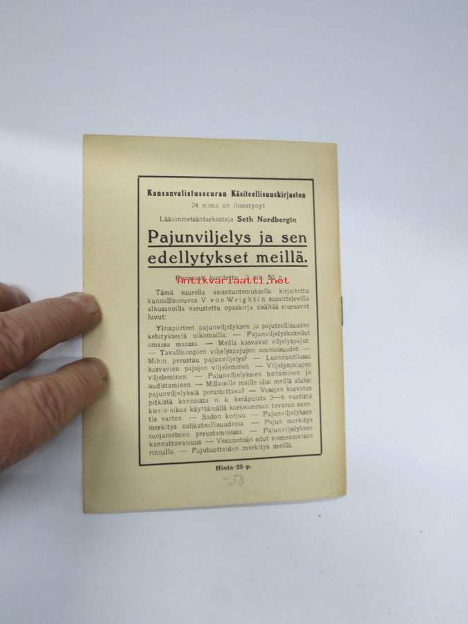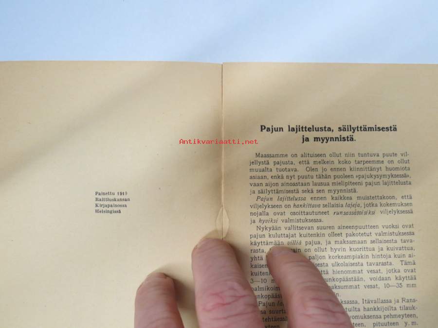Pajun lajittelusta, säilyttämisestä ja myynnistä - Kansanvalistusseuran Käsiteollisuuskirjasto 24 b