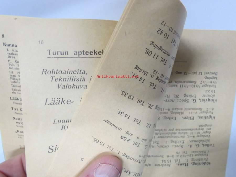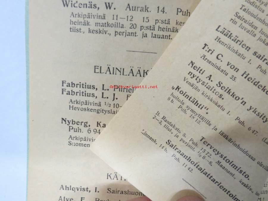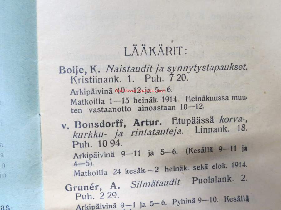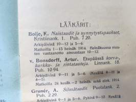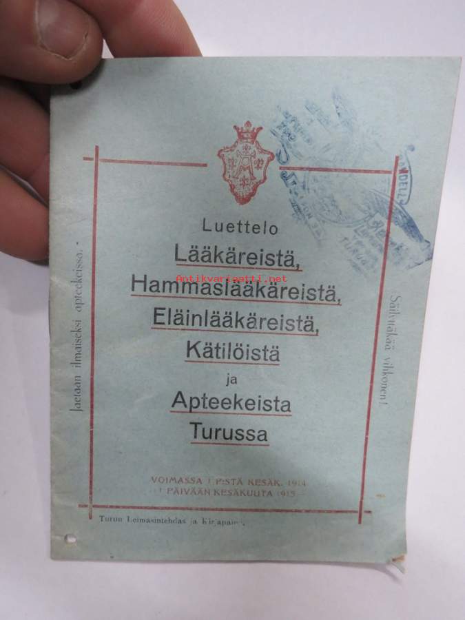 Luettelo Lääkäreistä, Hammaslääkäreistä, Eläinlääkäreistä, Kätilöistä ja Apteekeista Turussa 1914 - Förteckning över Läkare, Tandläkare, Veterinärer, Barnmorskor...