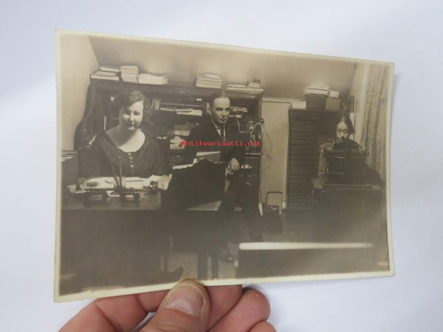 Rautatiekirjakaupan (Wiipuri) konttori v. 1926, Oili Kautonen, johtaja Abt, Hilja Niskanen nykyään Berg -valokuva