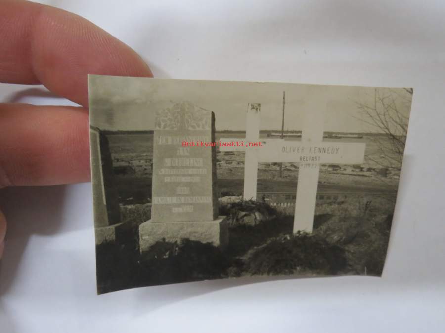 Ter Herinnering aan G. Dubbeling Rotterdam 1898 - Räfsö (Reposaari) 1923 Door Familie en Bemanning S.S. "EEM" hautakivi + Oliver Kennedy, Belfast 1923 -valokuva