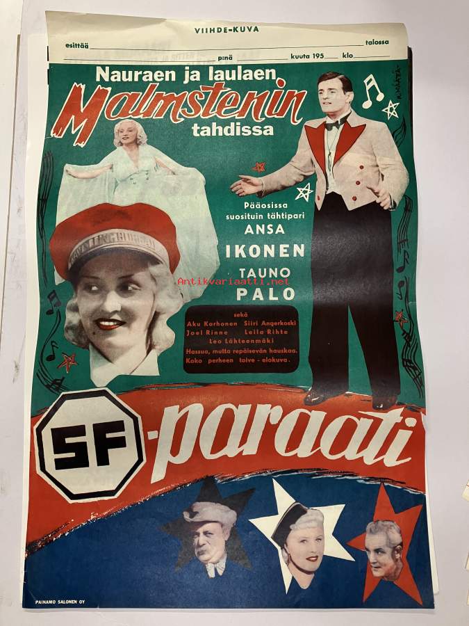 SF-Paraati - Nauraen ja laulaen Malmsteninin tahdissa, pääosissa Ansa Ikonen, Tauno Palo -elokuvajuliste