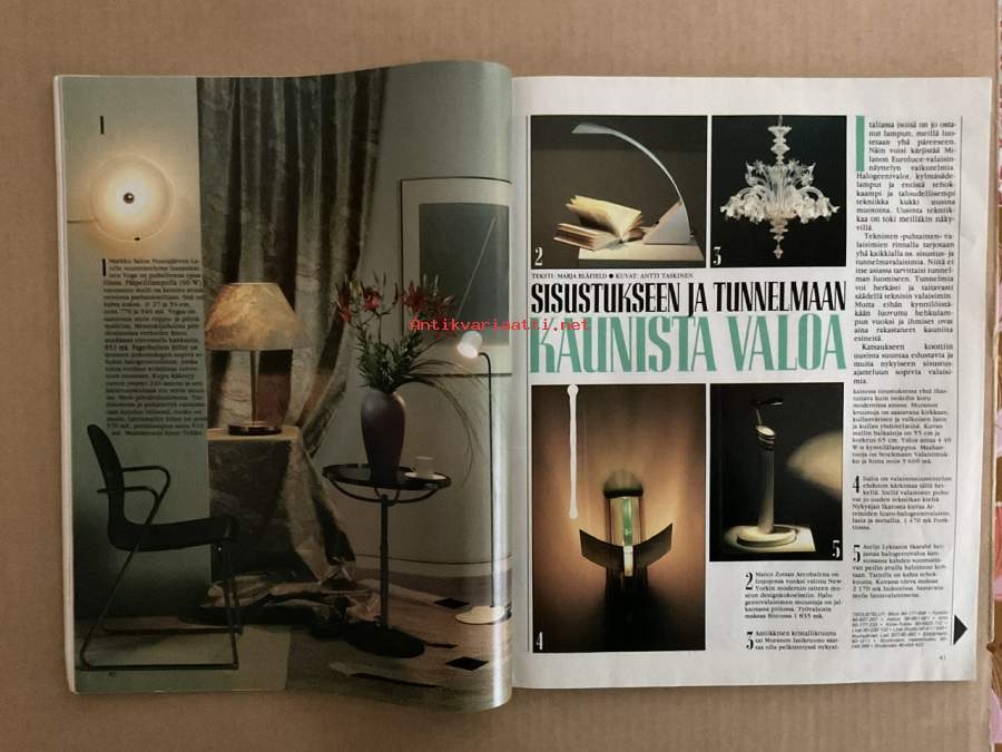 Kotiliesi 1986 nr 21 (7.11.), Sotalesket, sadan markan villat Ruoholahdessa, valaisimet