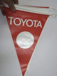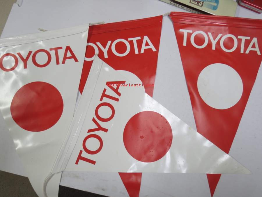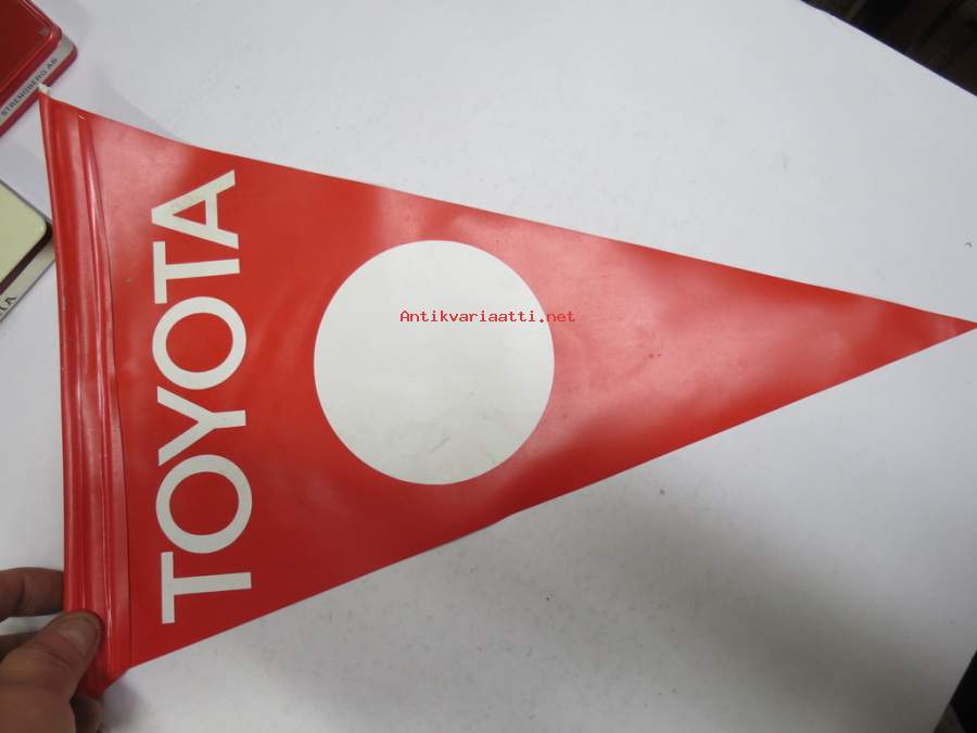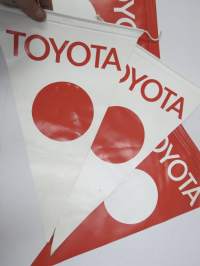 Toyota mainosviiri -autoliikkeisiin tarkoitettua mainosmateriaali, muovia, arvilta 70-luvulta, 4 kpl erä
