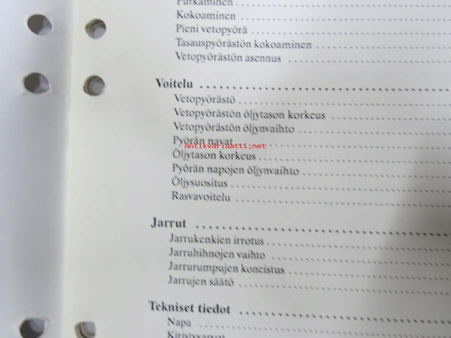 | Saatavilla | 1 kpl | | Sivuja | 32 | | Kunto | K2 | | Sidonta/painoasu | Nidottu (pehmeäk.) | | Kielet | Suomi |