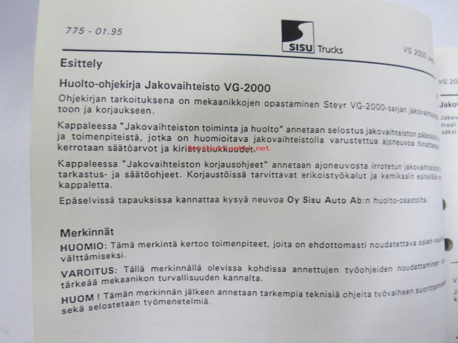 Sisu kuorma-autot - Huolto-ohje - Jakovaihteisto VG-1600/2000 -korjaamokirjasarjan osa