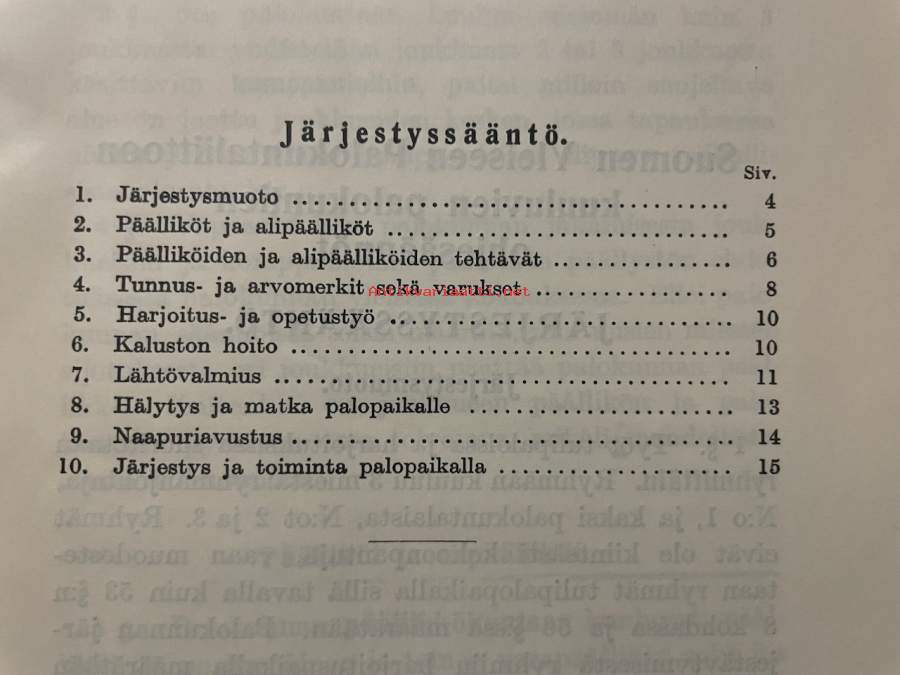 Suomen yleiseen palokuntaliittoon kuuluvien palokuntien ohjesäännöt Harjoitussääntö, Järjestyssääntö, Merkinannot