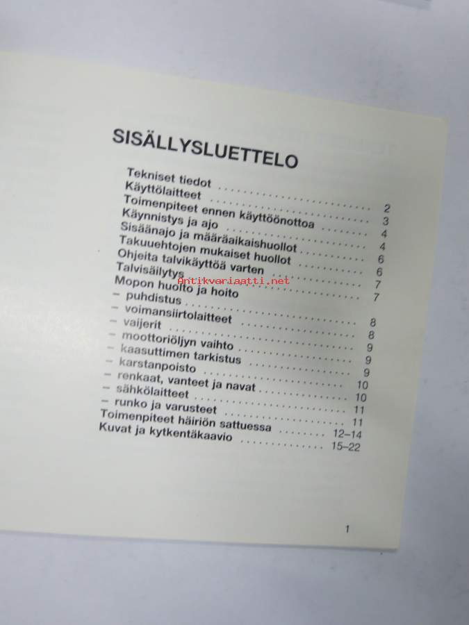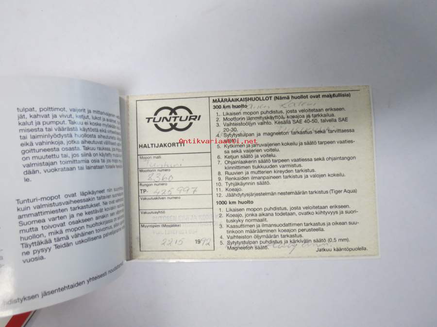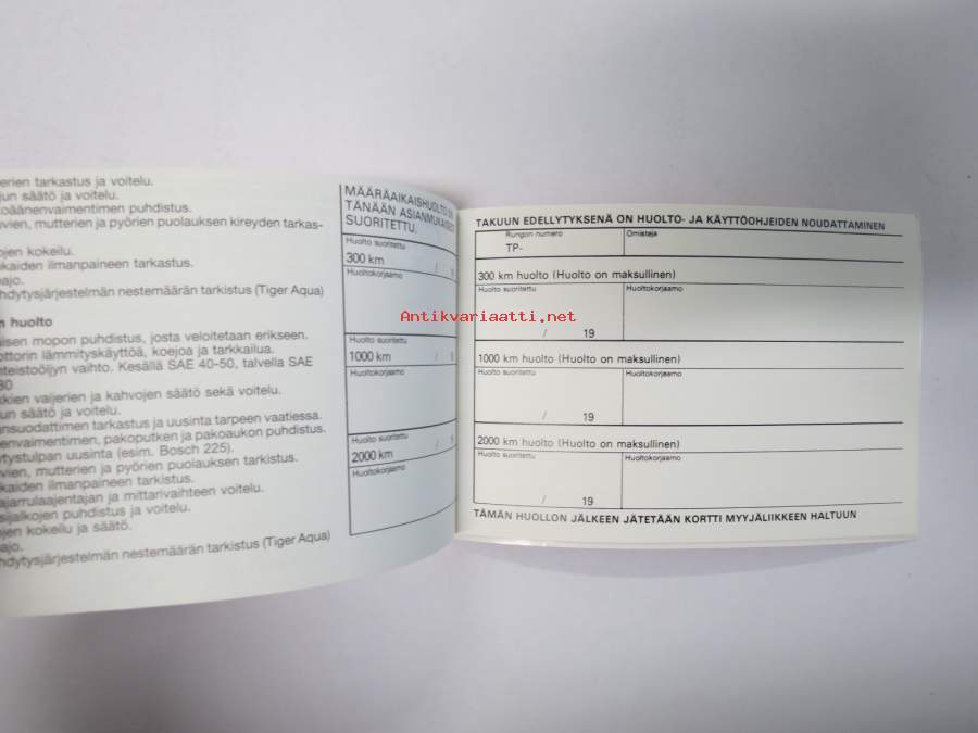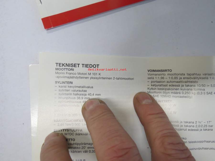 Tunturi mopedi / mopo (Morini Franco Motori M 101 K -moottori) 1992 tekniikka - käyttö - huolto + haltijakirja