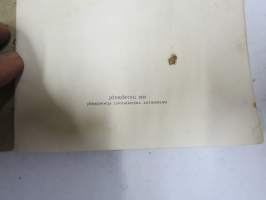 | Saatavilla | 1 kpl | | Julkaisuvuosi | 1925 | | Sivuja | 29 | | Kunto | K2 | | Kulunut, vikoja | | Sidonta/painoasu | Nidottu (pehmeäk.) | | Kielet | Suomi |