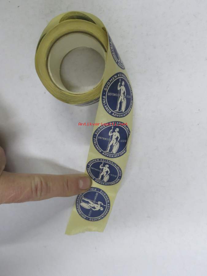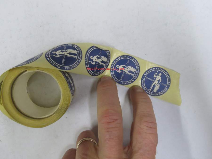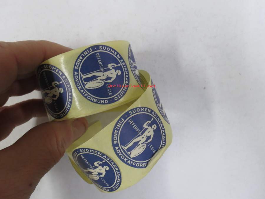 Suomen Asianajajaliitto / Finlands advokatförbund -vaasalaisen koho- ja tarrapainon (Herman Mattsson Korkokuvapaino & Pussitehdas) tuotantoa arviolta 1960-l lopusta