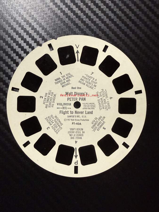 Myynnissä alkuperäinen Walt Disney’s Peter Pan – View-Master -kuvakiekkosarja, joka koostuu kolmesta eri kiekosta. Kiekot muodostavat yhtenäisen tarinakokonaisuuden elokuvasta Peter Pan.