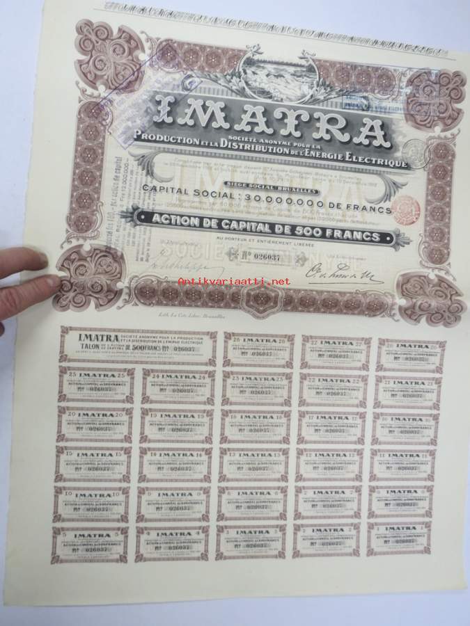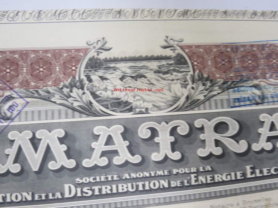 Imatra Sociéte Anonyme pour la Production et la Distribution de lÉnergie Electrique - Action ordinarie, nr 026037 -osakekirja / share certificate
