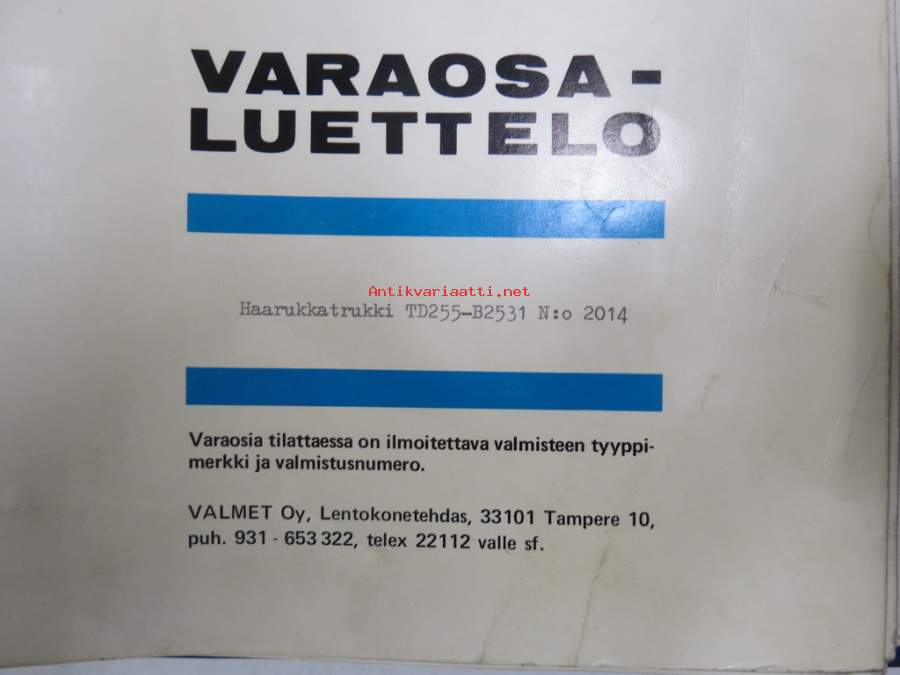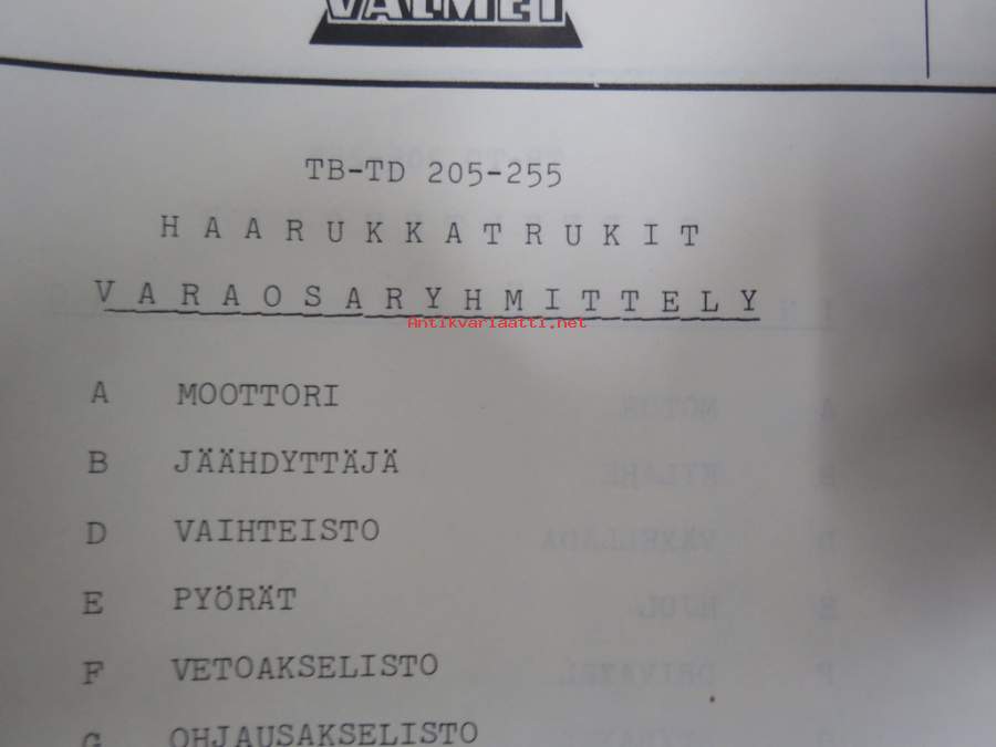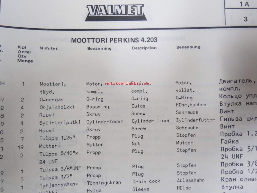 Valmet haarukkatrukki TD255-B2531 (sarjanumero 2014), moottori Perkins 4.203 Varaosaluettelo (Parts Catalogue)