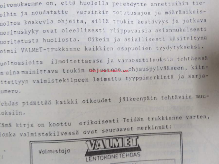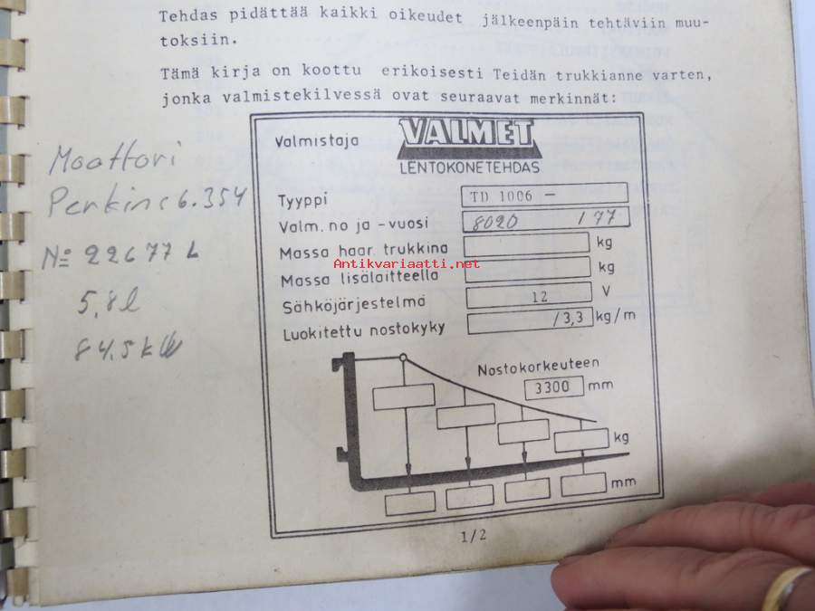 Valmet haarukkatrukki TD1006A (Perkins 6.354 moottorilla) - käyttö ja huolto / operator´s manual in finnish