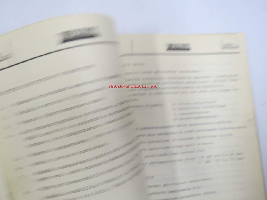 | Saatavilla | 1 kpl | | Julkaisuvuosi | 19?? | | Kunto | K2 | | Sidonta/painoasu | Muu | | Kielet | Suomi |