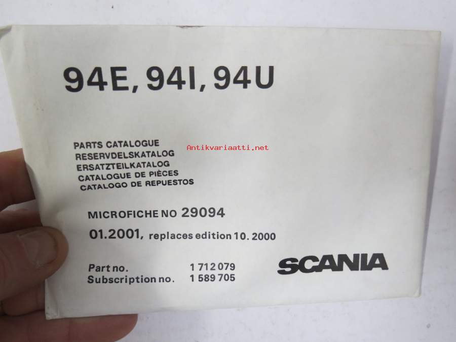 Scania 94E, 94I, 94U Parts Catalogue - Reservdelskatalog - Ersatzteilkatalog - Catalogue de Piéces - Catalogo de Repuestos, Microfiche nr 29094, 01-2001 mikrofilmi