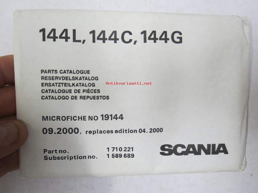 Scania 144L, 144C, 144G Parts Catalogue - Reservdelskatalog - Ersatzteilkatalog - Catalogue de Piéces - Microfiche nr 19144, 09.2000 mikrofilmi