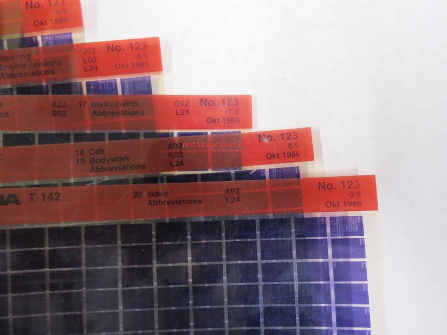 Scania T 142 nr 123 9/9, Oct. 1986 Parts Catalogue - Reservdelskatalog - Ersatzteilkatalog - Catalogue de Piéces - mikrofilmi