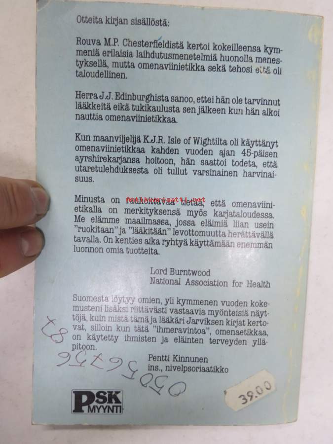 Asiasanat: ruokaohjeet, taudit, vaihtoehtolääkintä, luonnonparannus, luonnonlääkkeet, kansanlääkintä, etikka, sairaanhoito, eläinlääkintä, kotieläinhoito