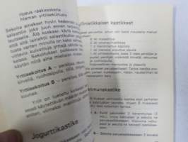 | Saatavilla | 1 kpl | | Julkaisuvuosi | 1979 | | Sivuja | 158 | | Painos | 1. | | Kunto | K2 | | Sidonta/painoasu | Nidottu (pehmeäk.) | | ISBN | 9519921974 | | Kielet | Suomi |