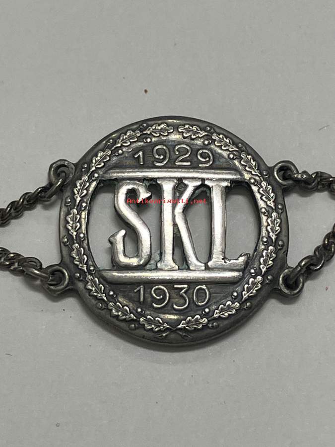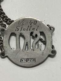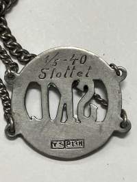 Svenska klassiska lyceum (i Åbo) 1929-1930 - 1.5.1940 Slottet -ranneke, 813 hopeaa -koulun jonkin luokan ranneke, jossa kaiverrettuna luokkakouksen aika ja paikka.