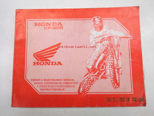 Honda CR80R 1991 owner´s maintenance manual -omistajan huolto-ohjekirja