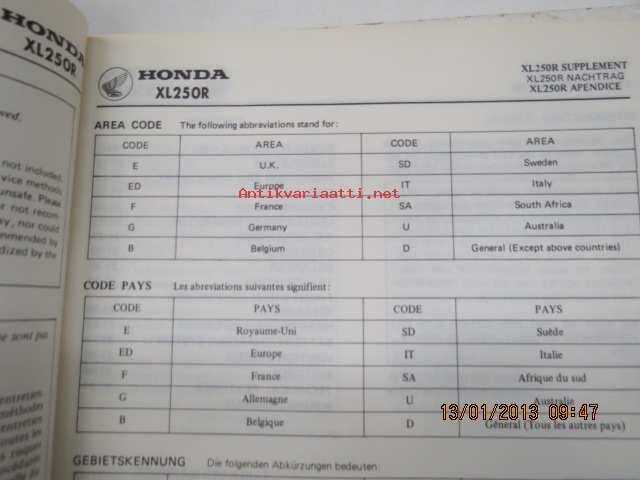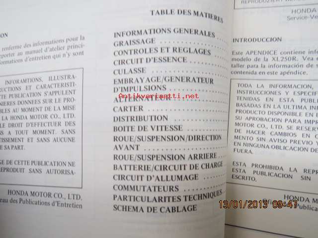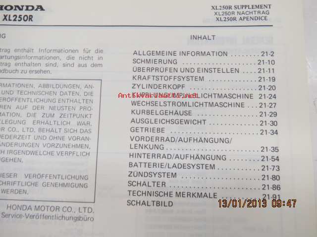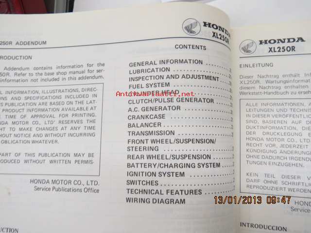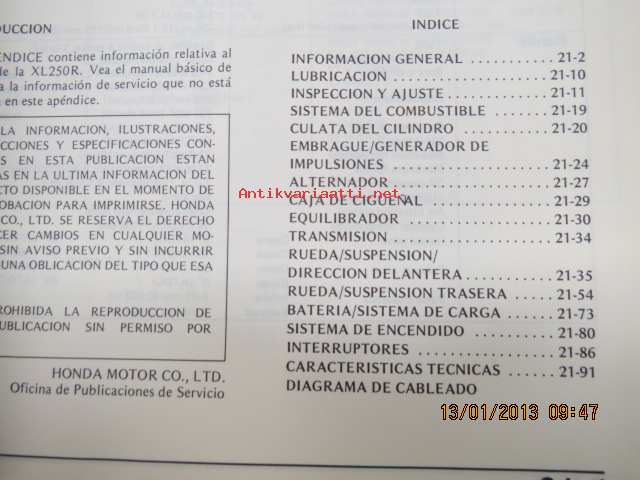 Honda XL250R Shop Manual -korjaamo-ohjekirja