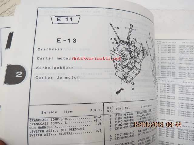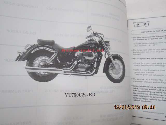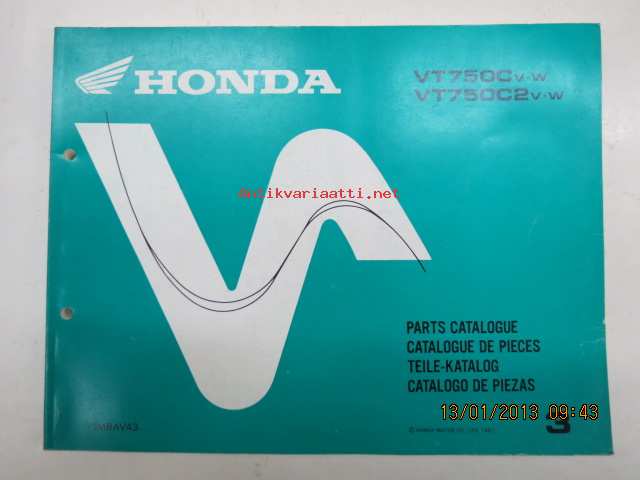 Honda VT750C v,w, VT750C2v,w Parts Catalogue -varaosaluettelo -korjaamokirja
