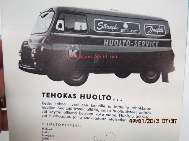 | Saatavilla | 1 kpl | | Julkaisuvuosi | 1962 | | Sivuja | 2 | | Kunto | K3 | | Sidonta/painoasu | Pienpainate | | Kielet | Suomi |